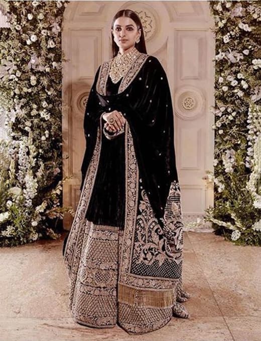 Ritika Bhavnani pasirinko „Sabyasachi black lehenga“ vestuvių priėmimui „Deepika Padukone Ranveer Singh Mumbai“, kuris atrodo itin elegantiškai. „Sabyasachi lehenga“ siena pagaminta iš sunkaus auksinio darbo, kuris yra nuostabus. Visas dizainas atrodo tikrai elegantiškas, o ne per sunkus – gana elegantiškas.